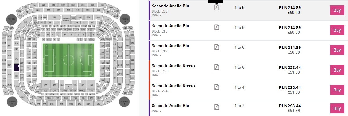 Na chwilę obecną bilety na ten mecz zakupimy wyłącznie na rynku wtórnym. Najtańsze wejściówki kosztują ok. 60 EUR (ok. 264 zł)REZERWUJ====>
