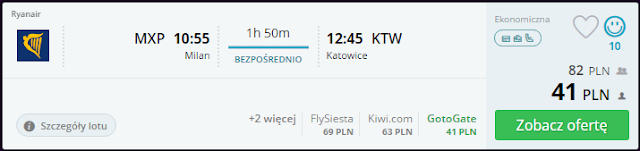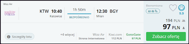 Proponujemy wylot w dniu meczu 16.12 z Katowic do Bergamo za 44 zł* (cena regularna 97 zł) REZERWUJ====>. Wracamy dzień po meczu 17.12 z Mediolanu Malpensa do Katowic za 41 zł REZERWUJ====>