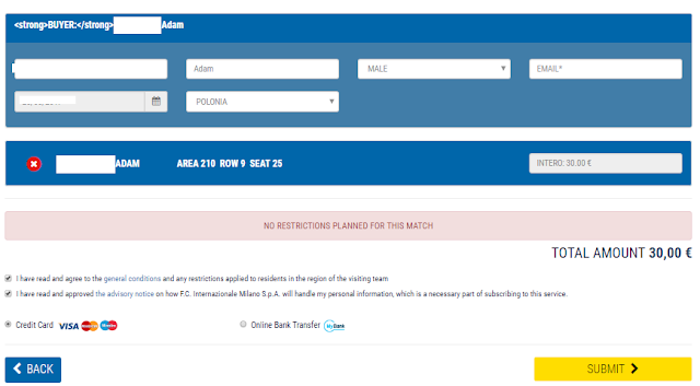 Bilety dostaniemy na oficjalnej stornie Interu Mediolan. Najtańsze bilety zaczynają się od 30 EUR (ok 129 zł) REZERWUJ====>