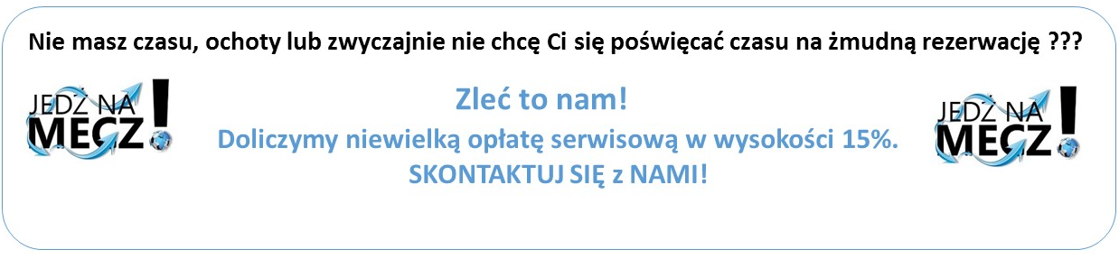 Najczęściej istnieje jeszcze wiele kombinacji wyjazdów i powrotów na mecz. W przypadku gdybyś był zainteresowany wyjazdem na mecz a lot jest nieaktualny lub nie ujęliśmy Twojej lokalizacji –napisz do nas, postaramy się wyszukać dogodną komunikację.