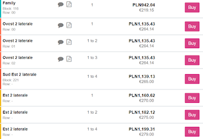 Wejściówki zakupimy za pośrednictwem rynku wtórnego. Najtańsze bilety kosztują 260,20 EUR (ok. 1120 zł) REZERWUJ====>.