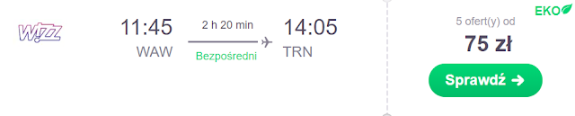 Do Turynu możemy dostać się bezpośrednio 30 marca z Warszawy za 39 zł* (cena regularna 75 zł) REZERWUJ====>. Powrót planujemy na następny dzień. Za lot z Turynu do Warszawy (z przesiadką w Brukseli) zapłacimy 260 zł* (cena regularna 300 zł) REZERWUJ====>.
