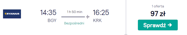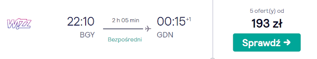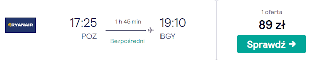 Włochy opuszczamy także z mediolańskiego lotniska 16 grudnia. Tego dnia dotrzemy do Krakowa za 97 zł REZERWUJ====>, Warszawy Modlin za 108 zł REZERWUJ====> oraz Gdańska za 169 zł* (cena regularna 193 zł) REZERWUJ====>.