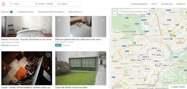 Na nocleg zachęcamy do skorzystania z popularnego serwisu wynajmu apartamentów/pokoi Airbnb.pl. W przypadku skorzystania z oferty z naszego linku zarezerwuj TUTAJ=====> otrzymują Państwo 100 zł zniżki na 1 rezerwację! (opcja dla nowych użytkowników). Apartamenty 2/4 osobowe w komfortowych warunkach w pobliżu stadionu Juventus Stadium można znaleźć w granicach 160 – 300 zł za dobę (80 zł od osoby za noc w przypadku 4 osobowej grupy).