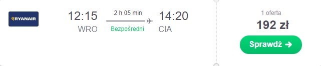 Proponujemy wylot do Rzymu dzień przed meczem z Wrocławia za 192 zł REZERWUJ ==== >. W dniu meczu mamy możliwość wylotu z Warszawy za 124 zł* (cena regularna 169 zł) REZERWUJ ==== >