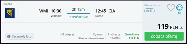 Powrót planowany jest dzień po spotkaniu 12.12 z lotniska Rzym-Fiumicino do Warszawy-Chopina za 84 zł* (cena regularna 139 zł) REZERWUJ====>.