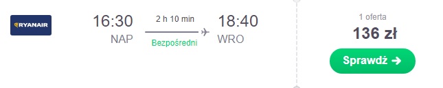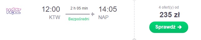 Proponujemy wylot dzień przed meczem 24.08 z Wrocławia do Neapolu za 316 zł REZERWUJ ==== >, lub w dniu meczu 25.08 z Katowic do Neapolu za 184 zł* (cena regularna 235 zł) REZERWUJ ==== >.