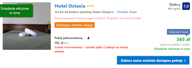 Innym rozwiązaniem jest wybór CiampinoHotel. Cena za nocleg w dniach 19-21 kwietnia wynosi 464 zł za jedną oraz 453 zł za dwie osoby (113,5 zł os./noc).