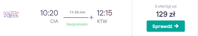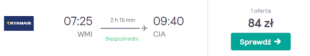 Półwysep Apeniński opuszczamy następnego dnia odlatując do Krakowa za 74 zł REZERWUJ====>, Katowic za 90 zł* (cena regularna 129 zł) REZERWUJ====>, Warszawy Modlin za 132 zł REZERWUJ====> oraz Wrocławia za 151 zł REZERWUJ====>.