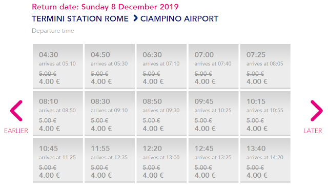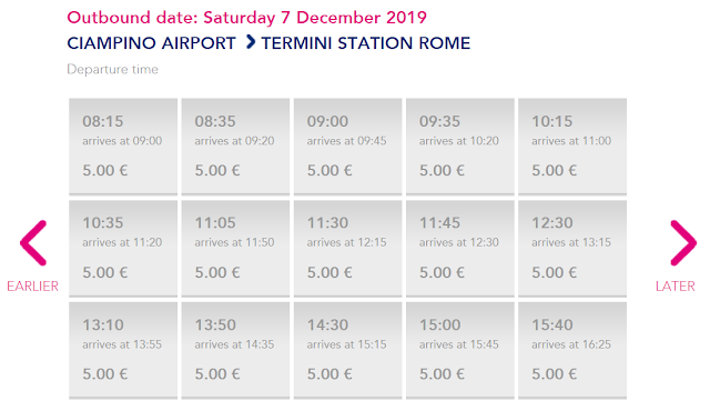 Z rzymskich lotnisk do centrum miasta dojedziemy autobusami linii Terravison. Koszt biletu z portu lotniczego Ciampino wraz z powrotem wynosi 9 EUR (ok. 41 zł) REZERWUJ====>, natomiast za kurs w jedną stronę z lotniska Fiumicino zapłacimy 5,80 EUR (ok. 26 zł) REZERWUJ====>.