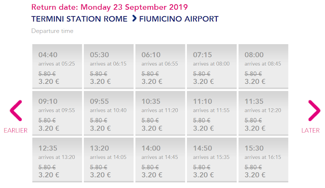 Dojazd z lotniska Fiumicino wraz z powrotem zapewni nam firma przewozowa Terravision. Cena za przejazd wynosi 9 EUR (ok. 41 zł) REZERWUJ====>.