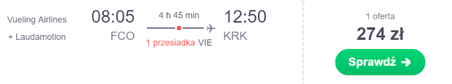 Do kraju wracamy następnego dnia. Do Krakowa (z przesiadką w Wiedniu) dotrzemy za 274 zł REZERWUJ====>lub Warszawy za 332 zł* (cena regularna 435 zł) REZERWUJ====>.