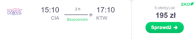 Powrót do kraju można zaplanować na 9 grudnia. Z Rzym Ciampino do Katowic dolecimy za 150 zł* (cena regularna 195 zł) REZERWUJ====>, Warszawy Modlin za 158 zł REZERWUJ====>, Wrocławia za 174 zł REZERWUJ====> oraz Krakowa za 183 zł REZERWUJ====>.