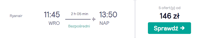 Do Neapolu możemy się udać bezpośrednio z Wrocławia za 146 zł REZERWUJ====> lub Krakowa za 171 zł REZERWUJ====> dzień przed wydarzeniem.