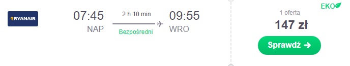 Proponujemy powrót dzień po meczu z Neapolu do Wrocławia za 151 zł REZERWUJ====> lub do Warszawy (z przesiadką w Rzymie) za 385 zł REZERWUJ====>