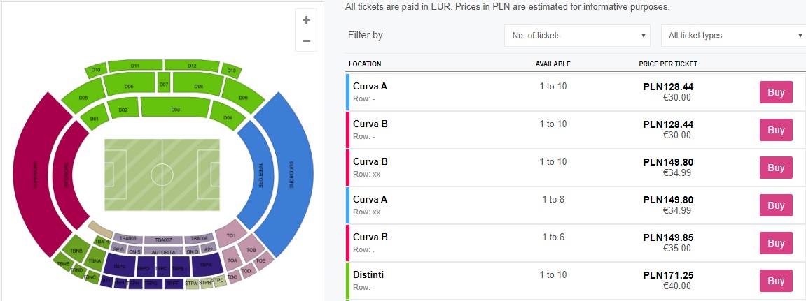 Gdyby cena na spotkanie była nieaktualna, bilety niedostępne albo potrzebowałbyś naszej gwarancji napisz do nas. W wielu przypadkach bilety na mecz możemy dostać jeszcze z kilku innych źródeł. Posiadamy kontakty z wieloma klubami, firmami oraz osobami, które zajmują się dystrybucją biletów.