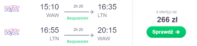 Wyjazd do Wielkiej Brytanii planujemy dzień przed zawodami – 20 września, natomiast powrót do kraju rezerwujemy na 22 września. Proponujemy lot do Londynu, do którego dostaniemy się (wraz z powrotem) z Krakowa za 105 zł* (cena regularna 166 zł) REZERWUJ====>, Poznania za 131 zł* (cena regularna 199 zł) REZERWUJ====>, Lublina za 142 zł* (cena regularna 218 zł) REZERWUJ====>, Warszawy za 182 zł* (cena regularna 266 zł) REZERWUJ====>, Warszawy Modlin za 196 zł REZERWUJ====>, Katowic za 202 zł* (cena regularna 288 zł) REZERWUJ====>, Szczecina za 207 zł REZERWUJ====> oraz Wrocławia za 223 zł REZERWUJ====>.