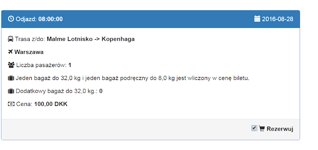 Powrót do Polski proponujemy w dniu po meczu 29.08. Wracamy podobnie liniami autobusowymi NEPTUNBUS, które swoje odjazdy dopasowują do wylotów samolotowych na lotnisku Malmö Sturup. Cena powrotna jest taka sama 100 DKK czyli ok 59 zł. Możemy zatem elastycznie dopasować swój powrót w zależności od portu lądowania w Polsce. Do wyboru Katowice, Gdańsk, Warszawa, Poznań ceny od 139 SEK czyli ok 63 zł zarezerwuj TUTAJ=====>