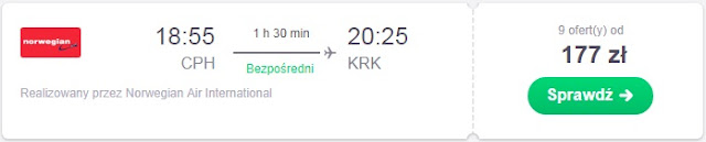 Powrót do kraju proponujemy jeszcze po spotkaniu, istnieje wówczas możliwość bezpośredniego przelotu z Kopenhagi do Krakowa za 177 zł REZERWUJ====>, do Warszawy za 246 zł REZERWUJ====> oraz do Gdańska za 275 zł REZERWUJ====>