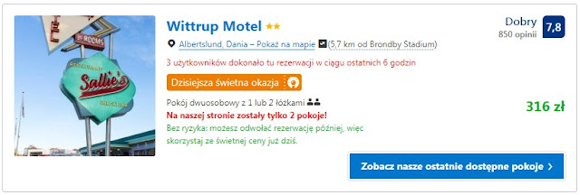 W przypadku wylotu do Danii dzień przed spotkaniem proponujemy pobyt na jedną noc dla dwóch osób w Wittrup Motel za 316 zł (158 zł/os/noc).
