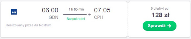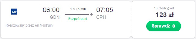 Powrót do kraju proponujemy jeszcze po spotkaniu, istnieje wówczas możliwość bezpośredniego przelotu z Kopenhagi do Krakowa za 177 zł REZERWUJ====>, do Warszawy za 246 zł REZERWUJ====> oraz do Gdańska za 275 zł REZERWUJ====>