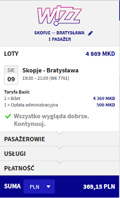 Alternatywnie proponujemy powrót dzień po spotkaniu 09.08 ze Skopje do Bratysławy za 370 zł*(cena regularna 417 zł) REZERWUJ====>
