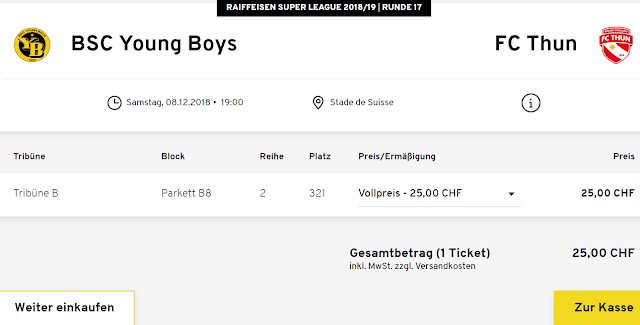Bilety na mecz BSC Young Boys z FC Thun zakupimy na oficjalnej stronie klubu. Koszt najtańszych wejściówek wynosi 25 CHF (ok. 95 zł). Aby zarezerwować miejsce należy dokonać rejestracji, która jest darmowa REZERWUJ====>.