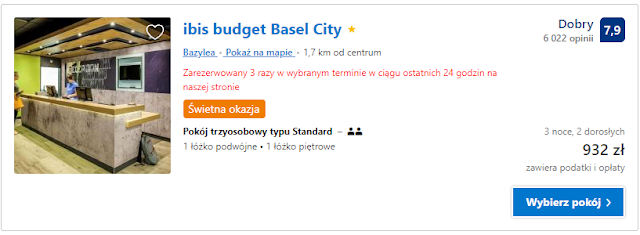 Proponujemy zatrzymać się w okolicach centrum Bazylei. Pierwszy z obiektów to ibis budget Basel City, w którym za pobyt w dniach 30 listopada – 3 grudnia zapłacimy 877 zł za osobę lub 932 zł za dwie osoby. W drugim hotelu w cenę noclegu mamy wliczone śniadania, a za trzydniowy pobyt w ibis Styles Basel City zapłacimy odpowiednio 1111 zł dla jednej i 1275 zł dla dwóch osób.