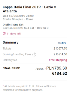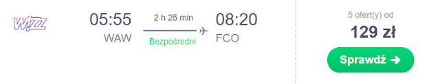 Doradzamy wylot w dniu meczu – 15 maja. Do stolicy Włoch dolecimy z Warszawy za 84 zł* (cena regularna 129 zł) REZERWUJ====> oraz Warszawy Modlin za 193 zł REZERWUJ====>.