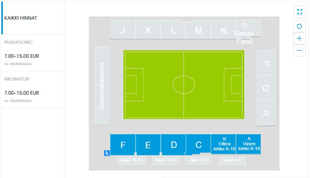 Wejściówki dostępne są za pośrednictwem oficjalnej strony internetowej Interu, która automatycznie wrzuci nas na serwer fińskiej wersji ticketmaster. Bilety normalne, dla osób dorosłych (wraz z przesyłką pocztą elektroniczną) kosztują 16€ (ok. 69 zł). Do zakupu niezbędna jest darmowa rejestracja REZERWUJ====>