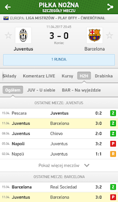 • Z zakładki H2H można przejść bezpośrednio do każdego z rozgrywanych meczów.